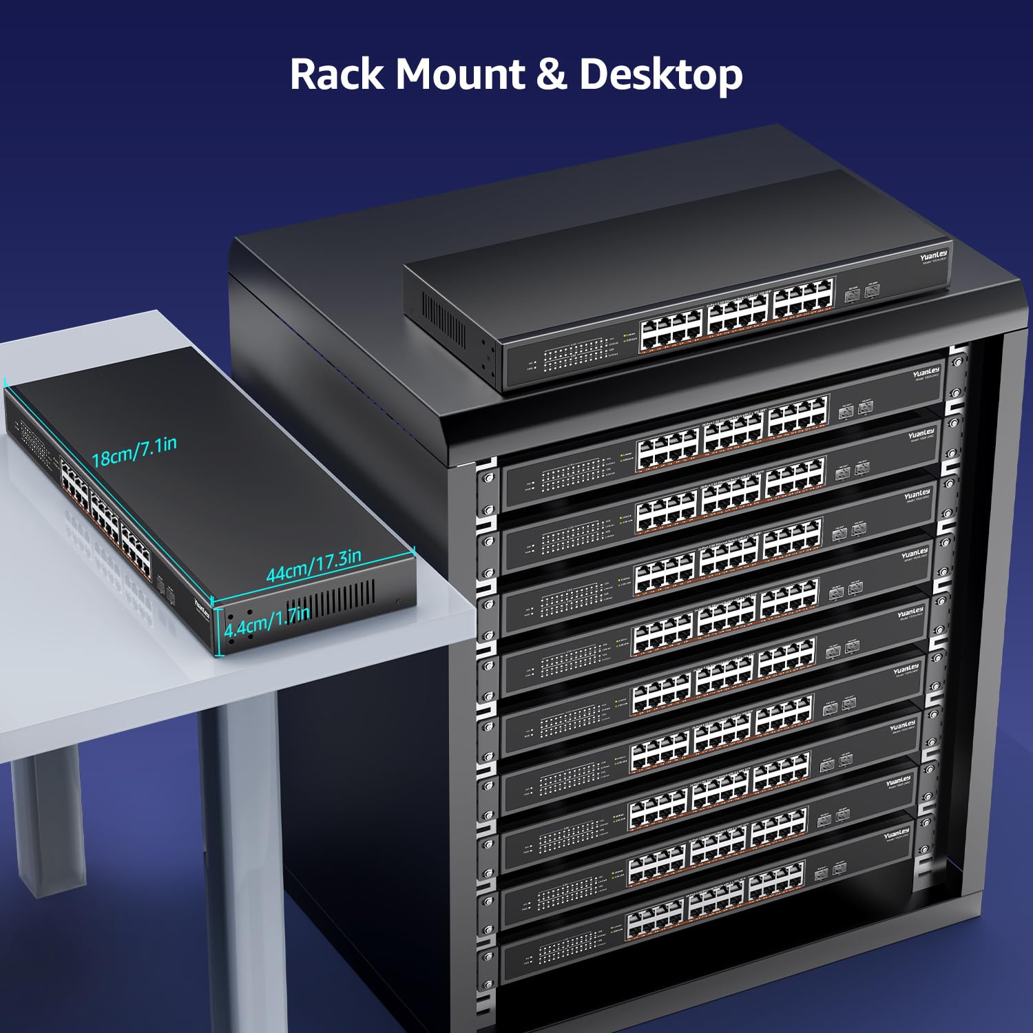 YuanLey 26-Port 2.5Gb Unmanaged Ethernet Switch – 24×2.5G Base-T, 2×10G SFP+, Fanless Metal Case
