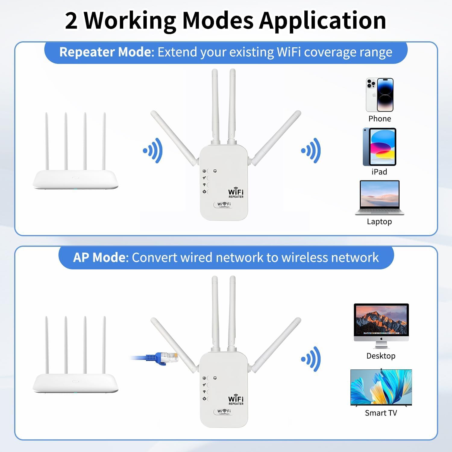 - Wide Device Compatibility: As a versatile wifi booster, it works with all your gadgets! From iPhones, Android phones, tablets, laptops, to smart TVs, gaming consoles like PlayStation and Xbox, plus IoT devices such as smart thermostats and doorbells, ensuring every device stays connected