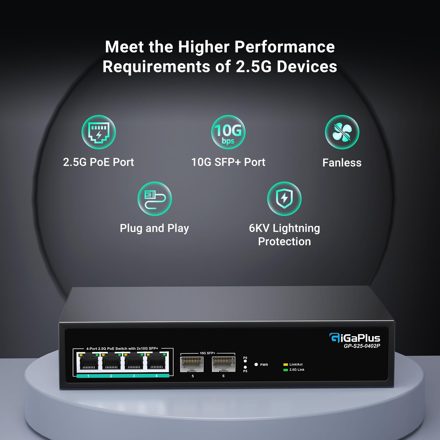 GigaPlus 6-Port 2.5Gb PoE Switch – 4×2.5G PoE+, 2×10G SFP+ Uplink, Unmanaged