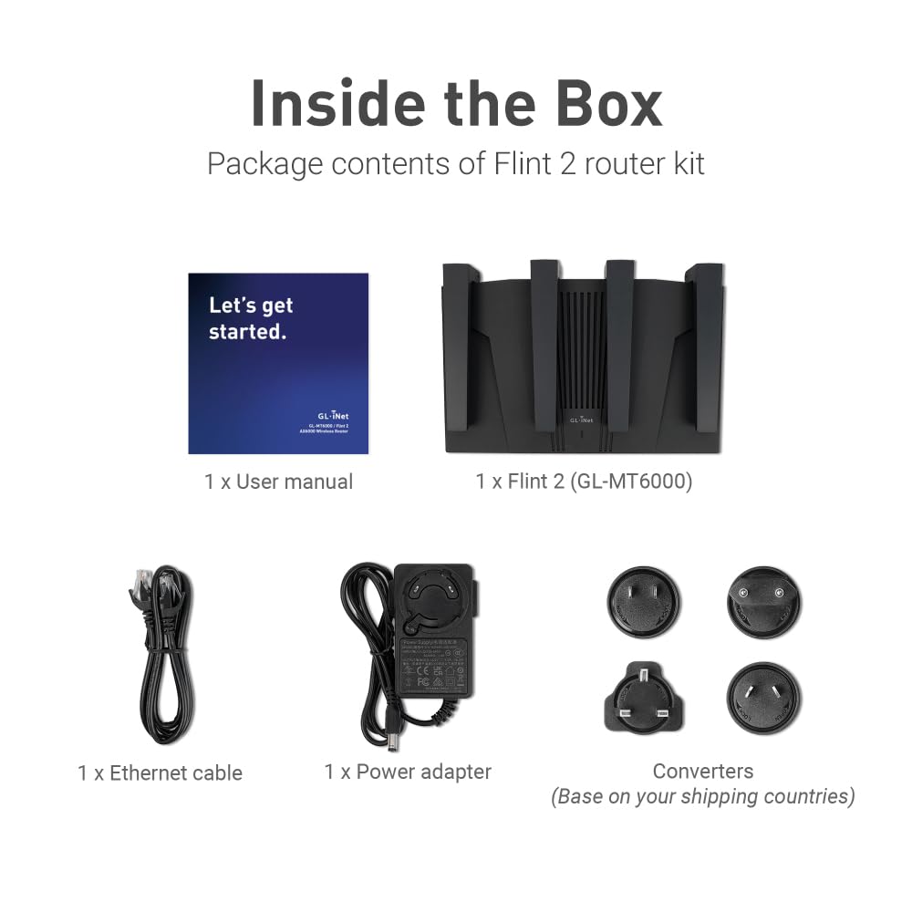 GL.iNet GL-MT6000 Flint 2 WiFi 6 Gaming Router – 2 x 2.5G Ethernet Ports, VPN Support