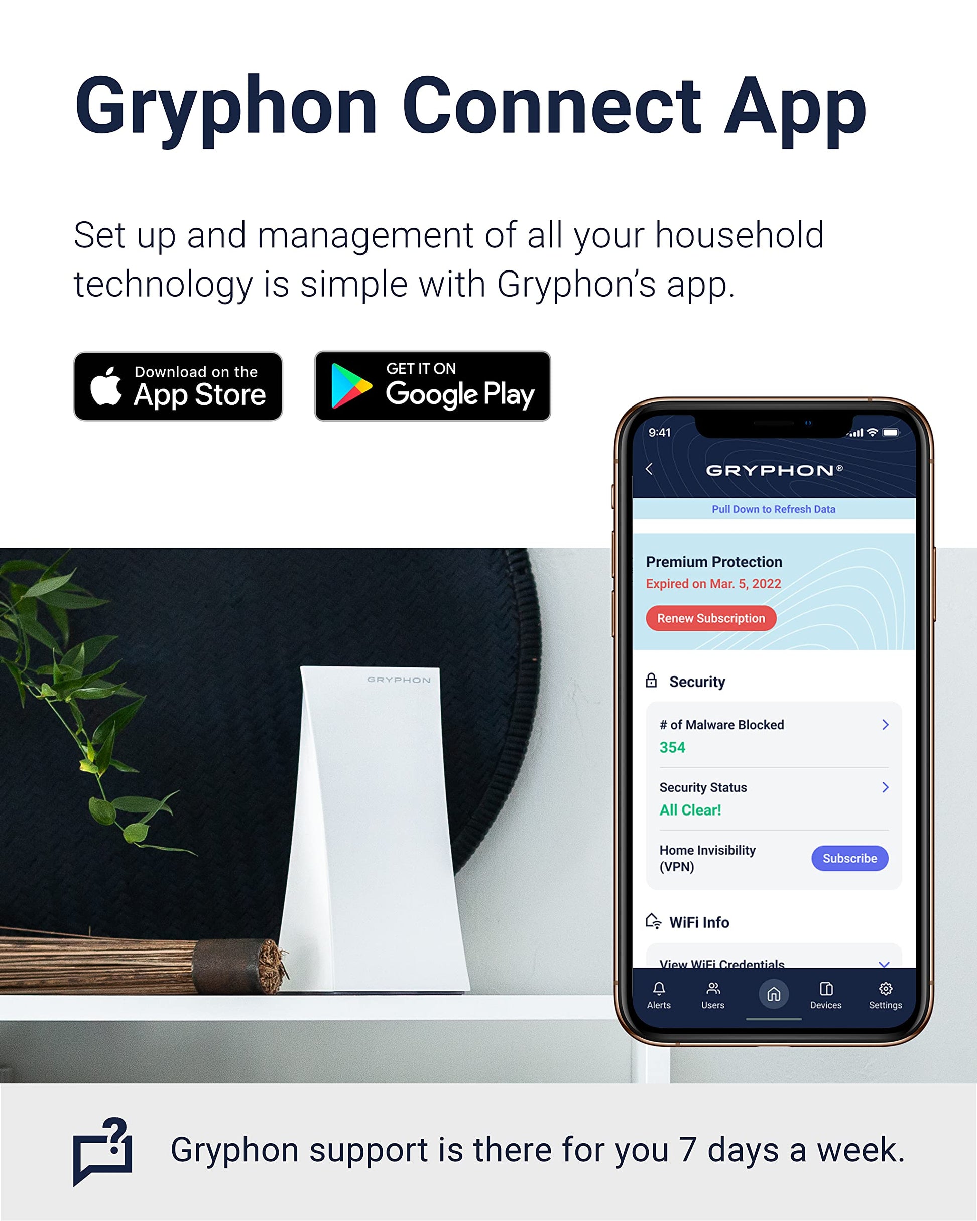 - SIMPLE SETUP & SMARTPHONE CONTROL – The Gryphon Connect app provides you with a single solution for managing your WiFi network, parental controls, device access, and app use (4) (5)