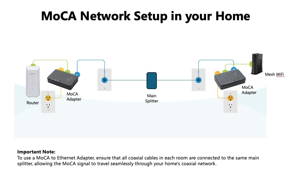 - BEFORE YOU BUY - CHECK YOUR COAX WIRING: MoCA requires all coax outlets to be wired to the same central splitter. If your outlets aren’t connected, MoCA may not work correctly.