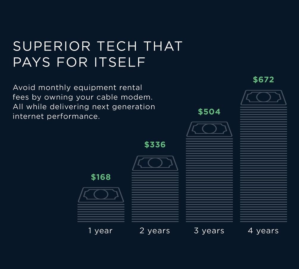 - Superior next generation technology but pays for itself. Owning your own modem eliminates up to $168 per year in monthly rental charges.